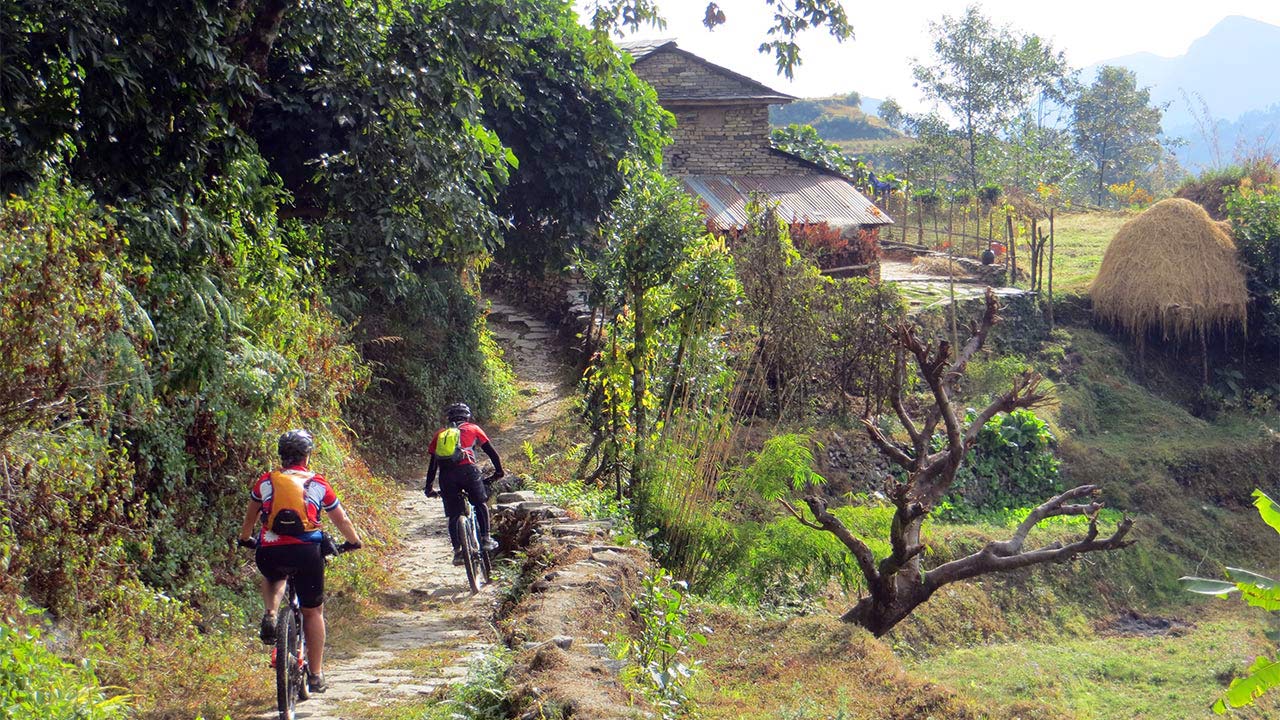 Australian Camp Mountain Bike Tour is one of the best mountain biking overnight trips in our list, recommended for intermediate to advance riders. Australian camp then known as a ‘Thulo Kharka’ by locals, means bigger pasture land. Since Australian people made a camp while trekking to ABC and Annapurna Sanctuary at around 50s then the Thulo kharkha slowly became popular among travellers from all over the world. The Australian Camp biking tour offers rewarding views of Dhaulagiri (8167m), Annapurna (8091m) and Mount Fishtail along with the views of cascading terraces, paddies and fast flowing mountain rivers. Along the way we will ride through Dhampus, Lawang and Khani villages, occupied by Gurung and Dalit people. We will have chances to observe their culture and authentic lifestyles. Join us for an awe-inspiring mountain bike tour, where every pedal unfolds scenic landscapes and ancient stories of this remarkable region of Nepal.